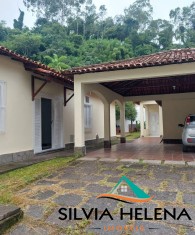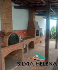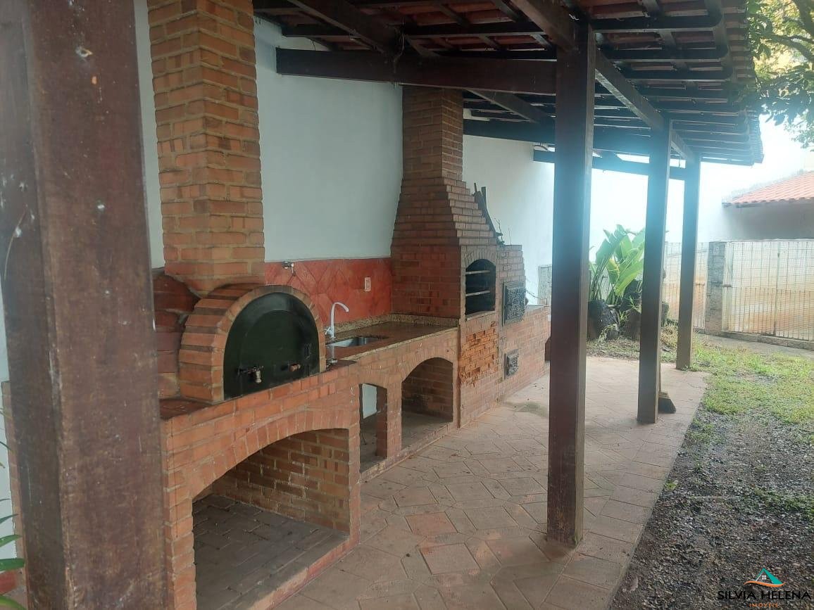 Varanda, sala, sala de jantar, lavabo, sala de TV, 3 quartos sendo 1 suite,1 banheiro social, copa, cozinha, garagem para 4 carros, lavanderia, canil, piscina desativada, area gourmet com fogão lenha, forno, churrasqueira.