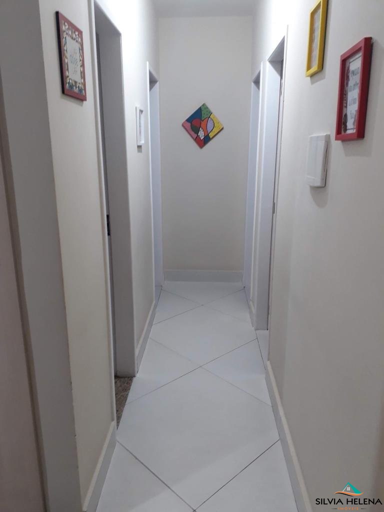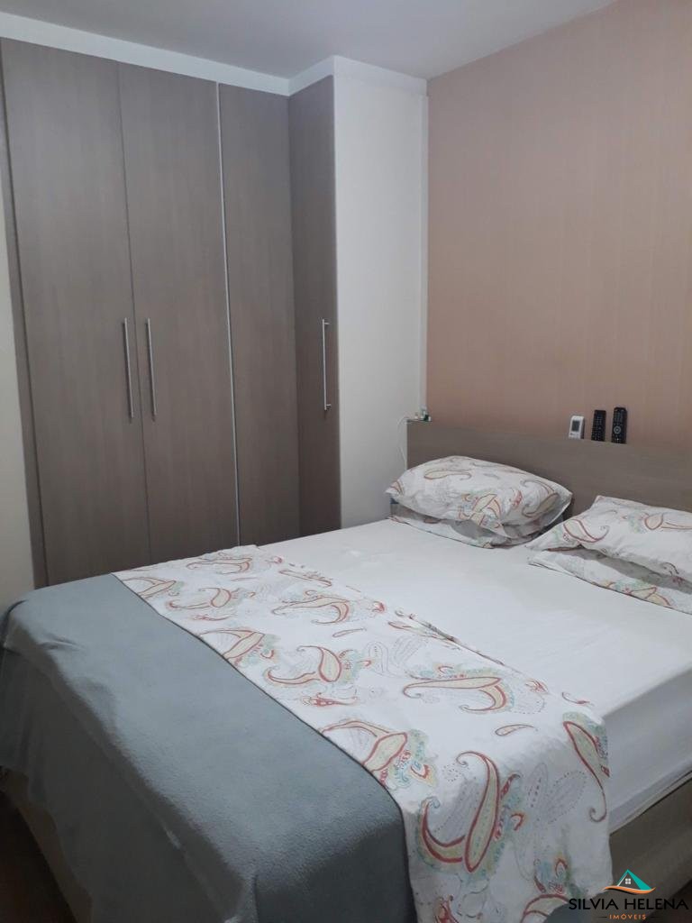 O imóvel possui 3 quartos, sendo 1 suíte (com closet), ar condicionado em dois deles, sala de estar, banheiro social (ambos com boxe e revestimentos modernos), cozinha e área de serviço com armários planejados e garagem coberta.
